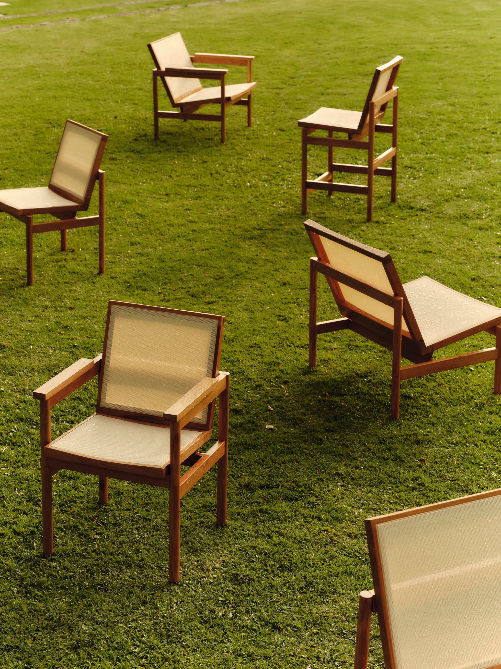 Premiada internacionalmente, a coleção Lourdes ganha versão para áreas externas. Em madeira Cumaru e tela sintética, mantém a elegância e a clareza construtiva que definem sua identidade.